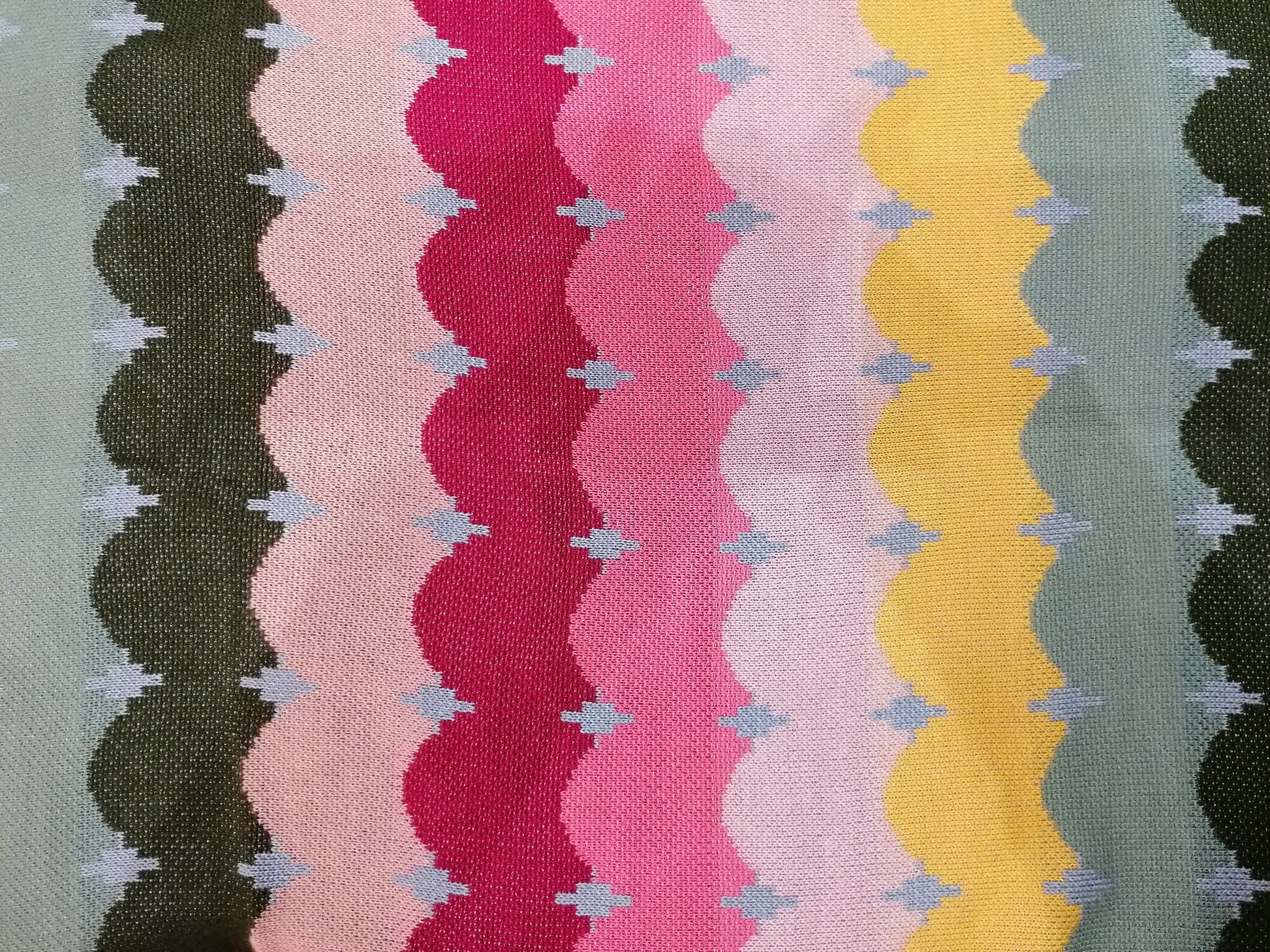 Jersey con estampado ondulado multicolor realizado en viscosa 100%. Cuello redondo.