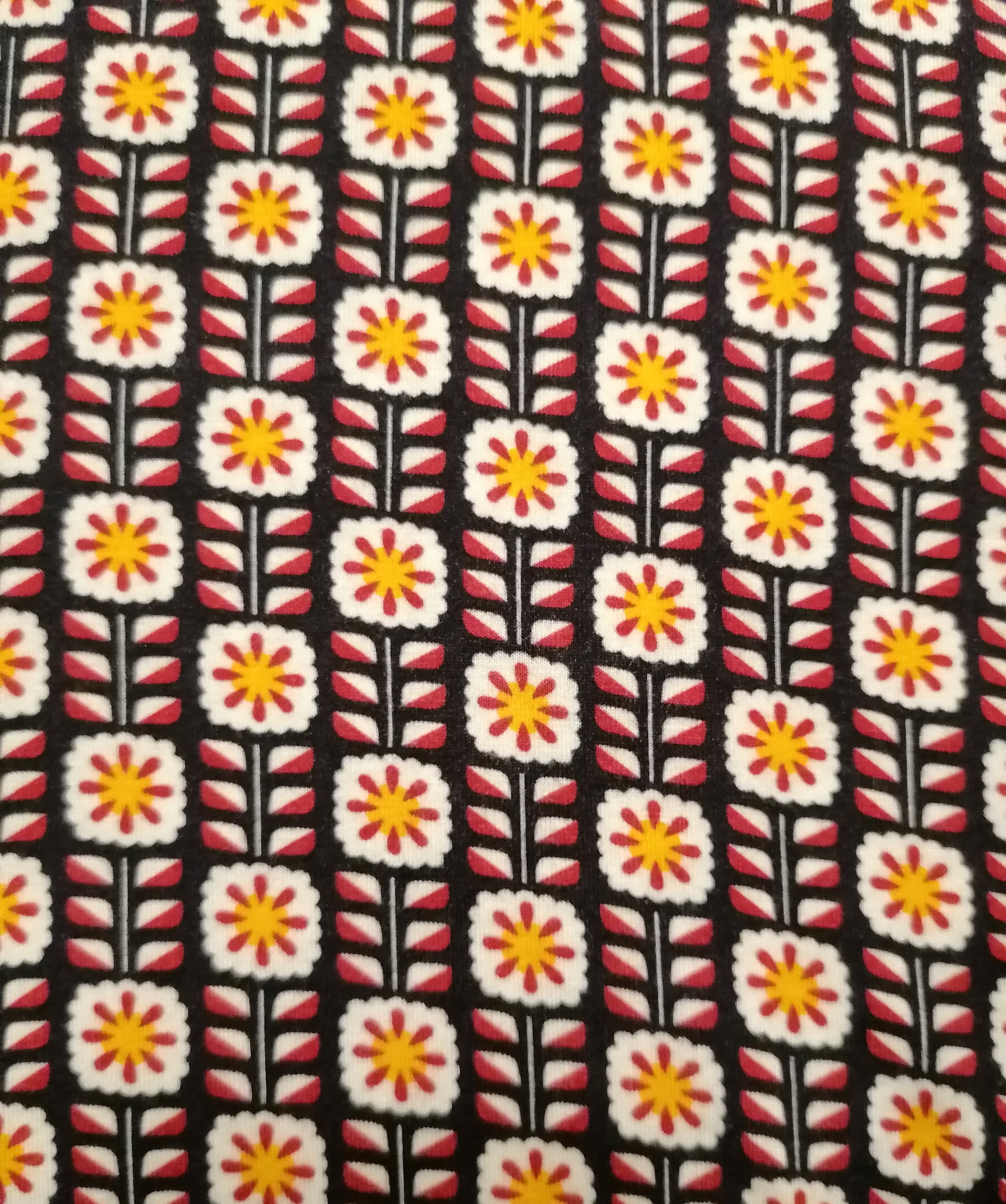 Pantalón estampado tipo leggins ligeramente acampanados, con cremallera lateral, un poco elásticos. Composición : 95% poliéster y 5% elastano.