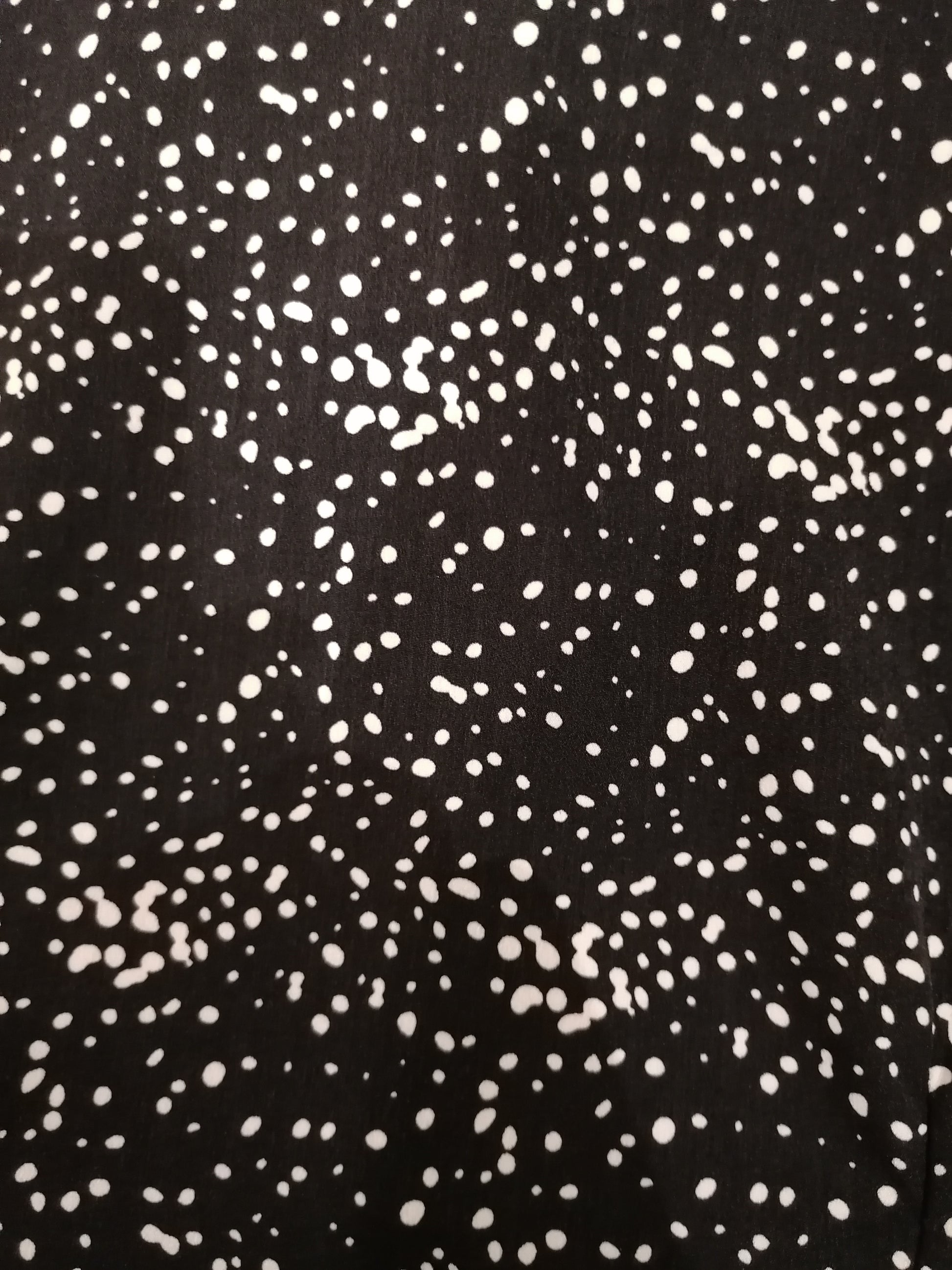 Camisa estampada de manchitas irregulares en color crema sobre fondo negro. Camisa de corte clásico , un poco entallada. Composición : 100% poliéster.