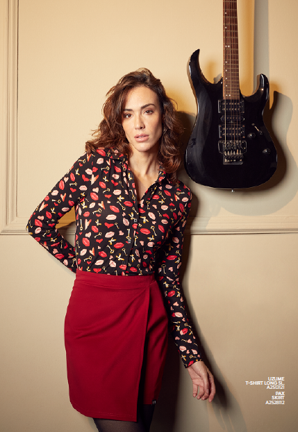 Camisa en punto de algodón ( 95% algodón y 5% elastano ), con un divertido estampado de labios, corazones mariposas y llaves sobre fondo negro. Super suave y confortable. El elastano hace que tenga cierta elasticidad .